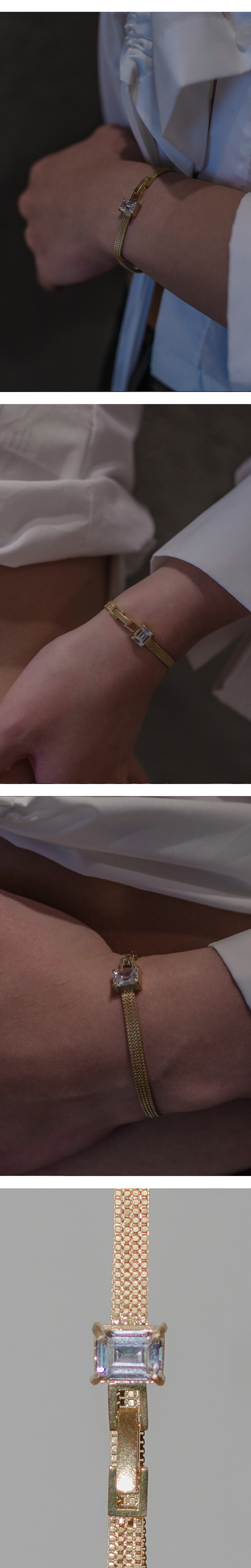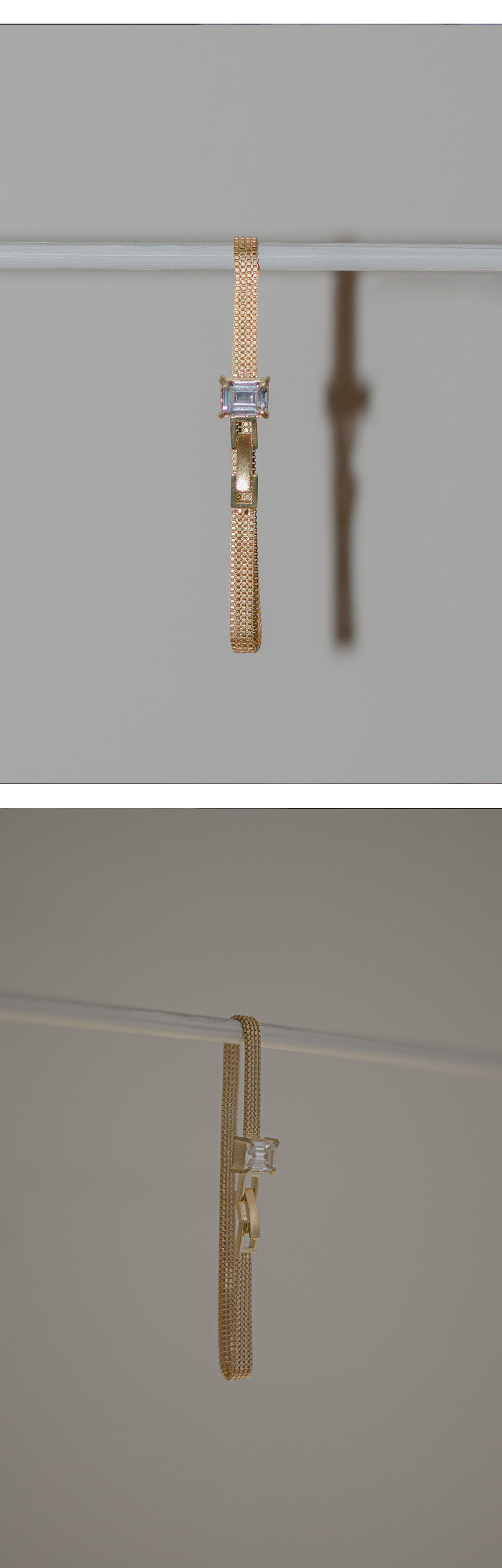 시린날 잠깐씩 들어오는 볕이 드는 투명한 창에서 모티브를 얻은 이 팔찌는 매끈한 코트, 또는 선이 정돈된 옷들과 잘 어울립니다.