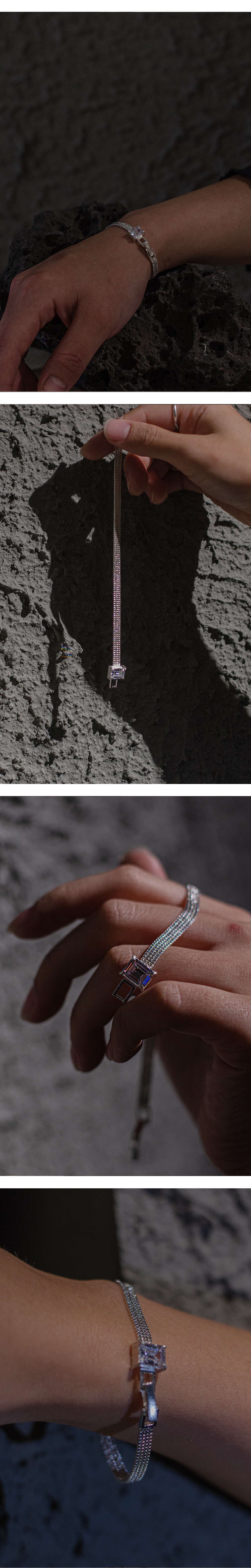 반짝이는 사각형들로 이루어진 팔찌입니다.