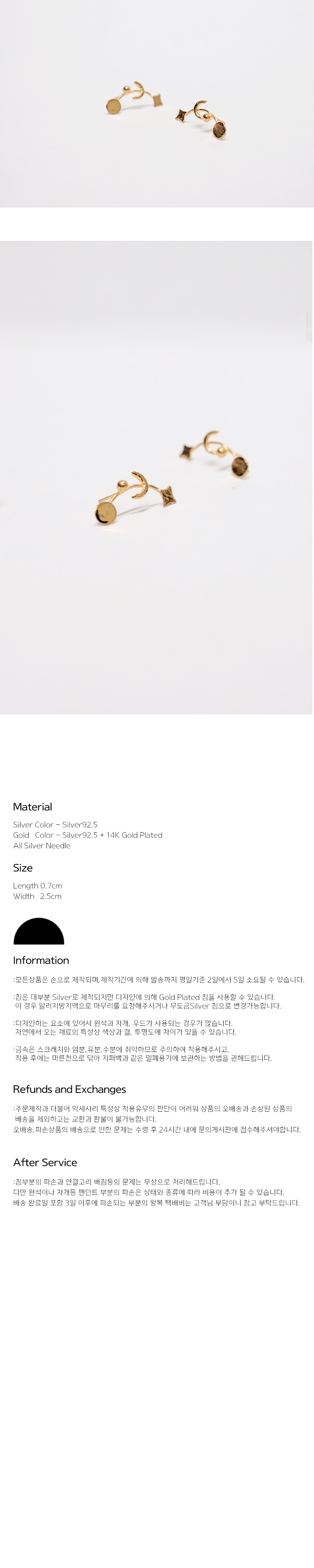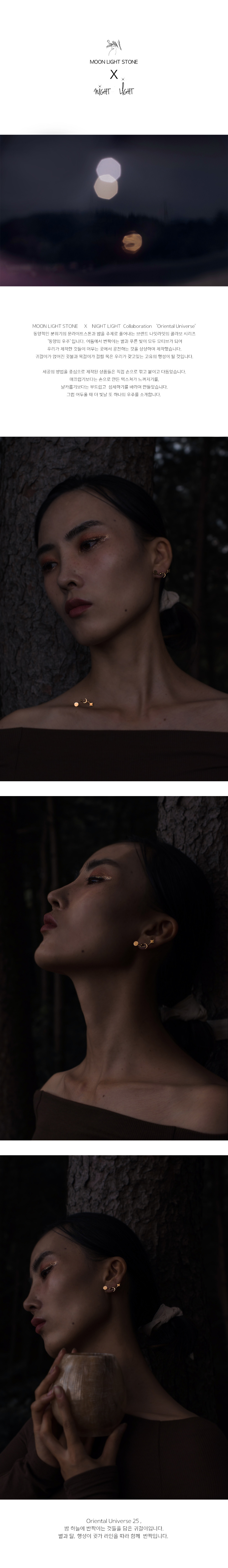 우주를 떠오르면 따라오는것들을 모두 담은 귀걸이입니다. 별과 달과 행성, 우리의 귓가를 따라 반짝이는 모습을 상상하게됩니다.