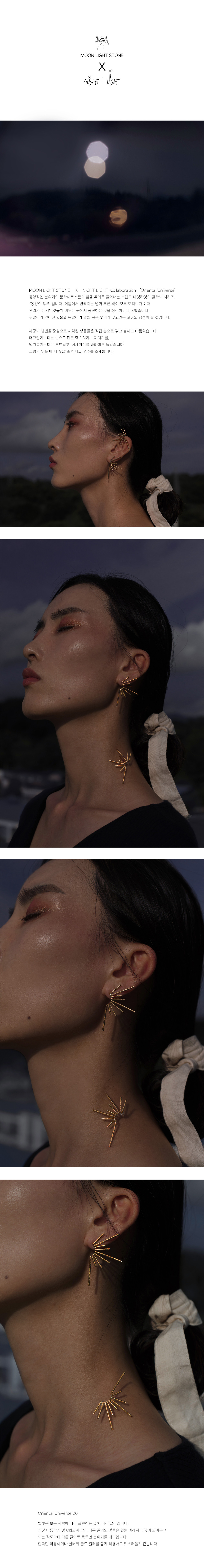 돋보이는 라인을 가진 이 귀걸이는 선의 배열과 귓가를 이루는 곡선의 어울림에 가장 신경을 썼습니다. 고개를 돌릴때, 정면에서 내가 어느곳을 바라보더라도 다른이의 시선은 나의 귓가에 닿기를 바라며