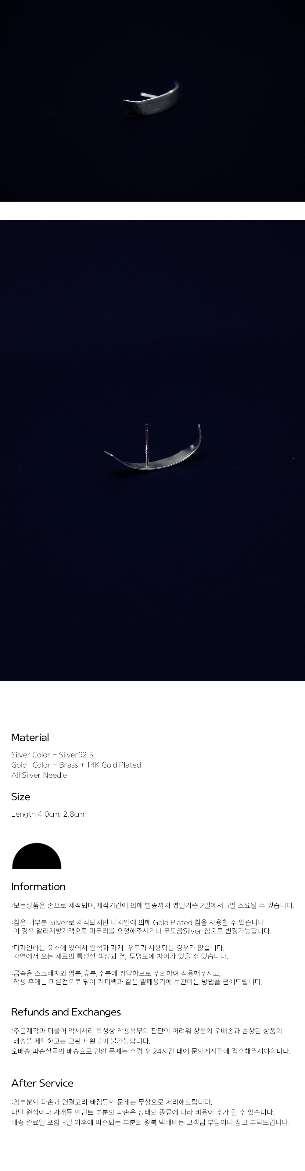 납작하고 약간의 커브형태를 띄는 싱글이어링입니다. 귓불의 길이에 따라 손의 힘으로 좀 더 구부리거나 펴서 원하는 분위기로 착용할 수 있습니다.