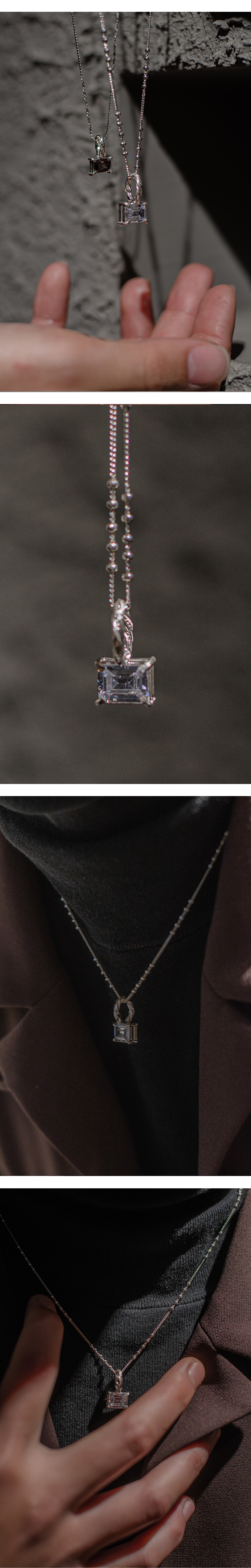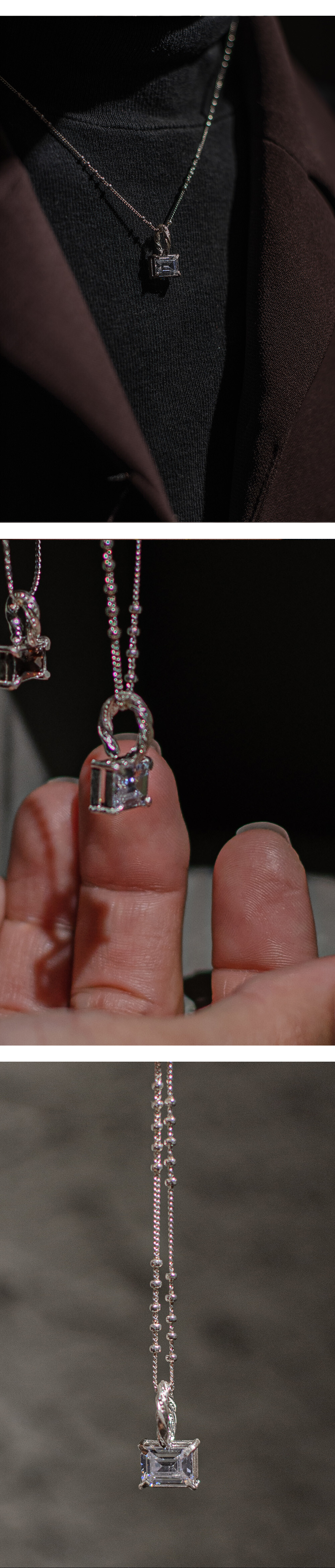꼬임으로 되어있는 펜던트 고리와 빛을 받으면 더 반짝거리는 줄과 사각형 오브제가 함께 어우러져 포인트가 되며 평범한듯하지만 특별함을 줍니다.