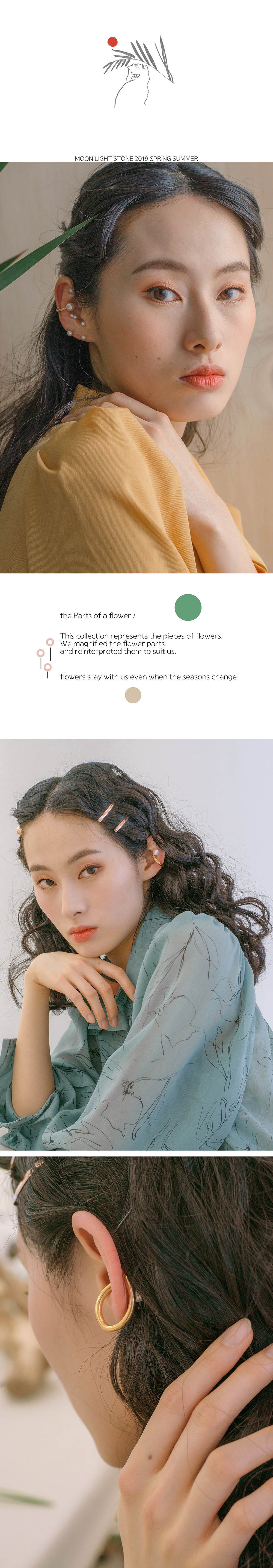 이번 컬렉션은 꽃의 작은 모습들을 표현합니다. 꽃의 부분을 확대하여 우리에게 어울릴 수 있는것들로 재해석 하였습니다.