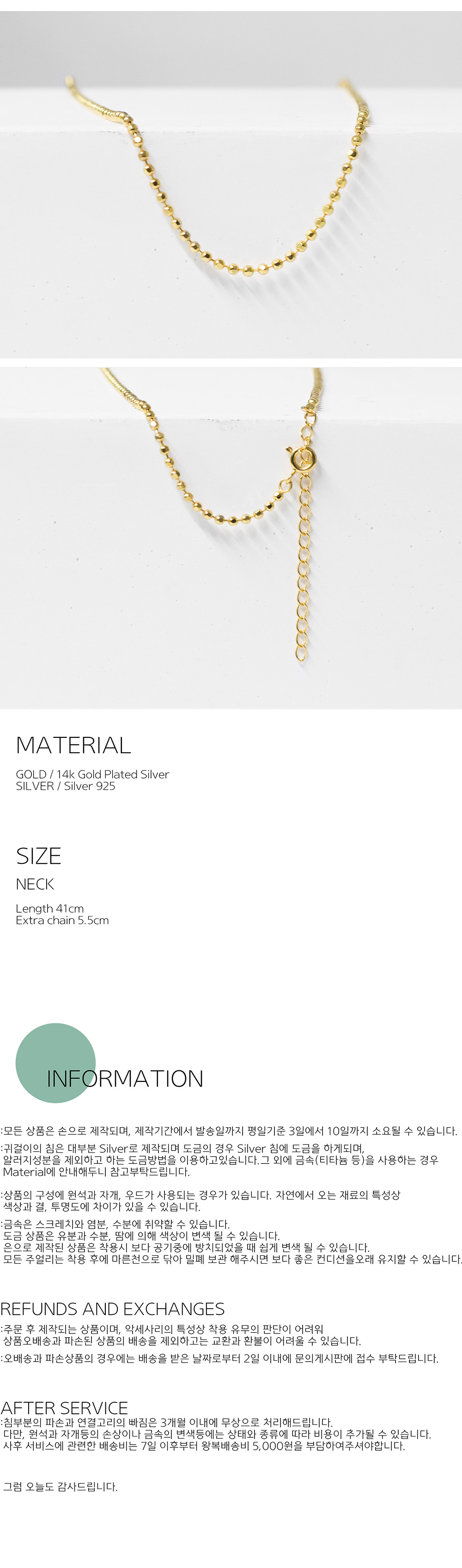 "Flower's neck02" 상품은 촘촘하고 반짝이는 납작한 볼들로 연결되어 있습니다.