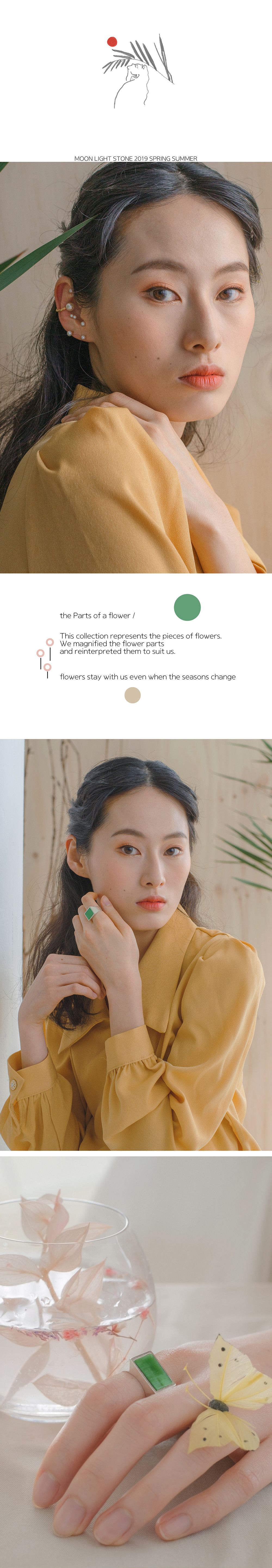 "Flower's ring02"은 균일한 톤을 위해 선택한 합성석이 자개처럼 반짝이는게 아름다운 반지입니다.