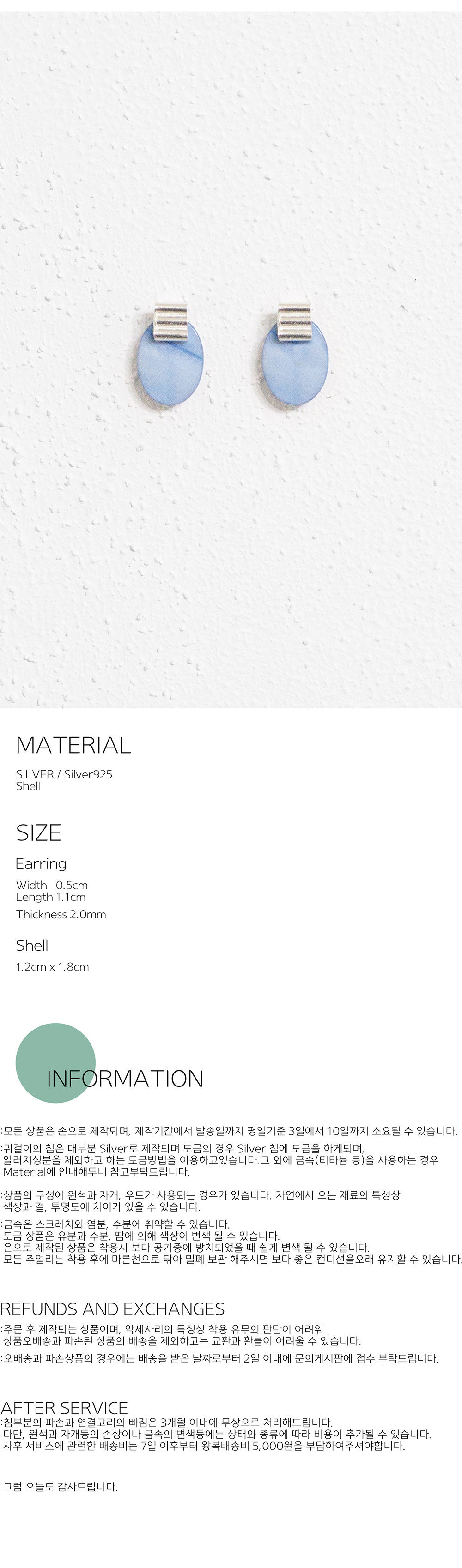 반짝이는 하늘색 자개는 따뜻한 봄날에 피부위에서