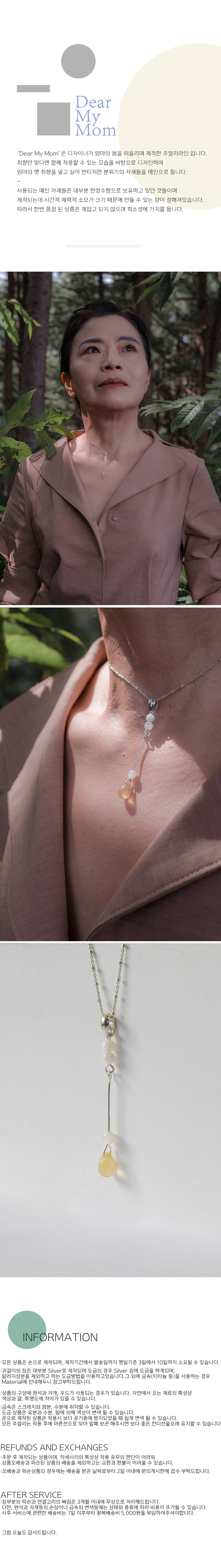 흰색 자개볼과 짙은 노란빛의 물방울모양 글래스가 햇빛을 받으면 영롱하게 빛나며