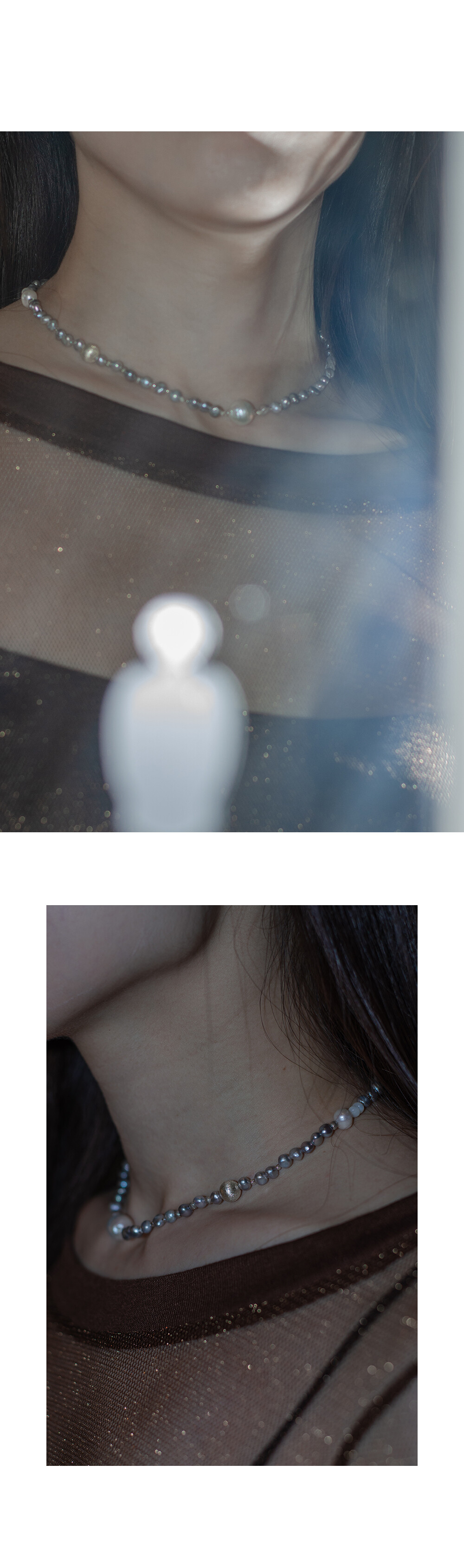 따뜻한 공기와 빛이 사라지지 않는 공간, 상상속의 이 공간은 해가 아주 길고 차갑지 않은 바람과 해변, 반짝이는 모래사장이 존재합니다. 해변과 이어진 수풀과 수풀을 지나면 만나는 투명한 민트 빛깔의 고요한 호수에는 투명한 자갈과 연보라색 금붕어, 그리고 경계가 없는 하늘과 땅이 마주하고 있습니다. - 해가 지지 않는 행성은 저녁이 되면 연보라빛으로 물들고 라일락 향기를 담은 바람이 불어오는 장면을 상상하며 제작했습니다. 흰 구름은 늘 뒤에 무지개를 숨겨놨어요. - 실크코드를 손으로 엮어가며 제작하는 제품으로 기계의 매듭이 아니기 때문에 제품별로 약간의 간격 차이가 있을 수 있습니다. 원석,실버,진주는 모두 같은 종류/등급을 사용하지만 크기와 형태의 차이가 있습니다.구매전 이 점을 꼭 참고해주세요. 소재는 글라스, 진주, 실크코드, 그리고 미얀마에서 제작되는 카렌 실버로 제작되었습니다. - 목걸이의 표면이 모두 피부톤 위에서 빛나기를 바라며 제작해서 길이감은 길지 않습니다.