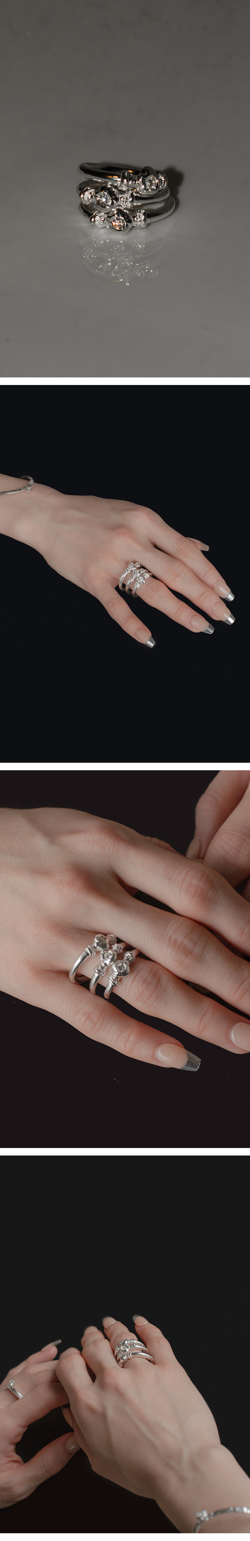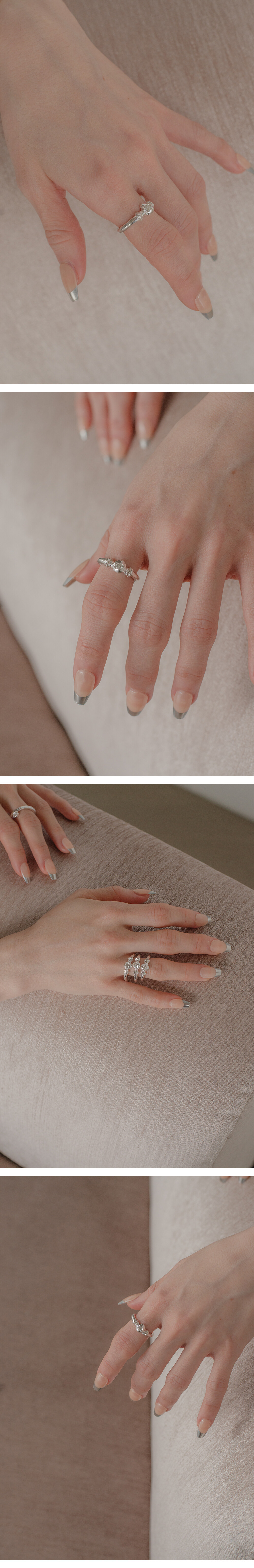 모티브에 반짝임이 돋보이는 화이트스톤을 세팅하였고, 사물로 보았을때보다 착용후 움직일때의 모습이 아름다운 반지입니다.