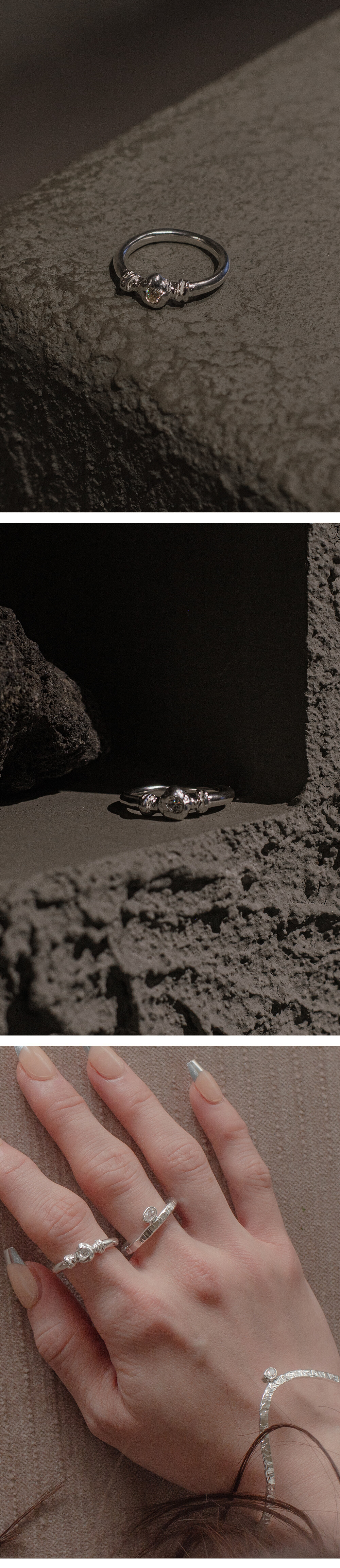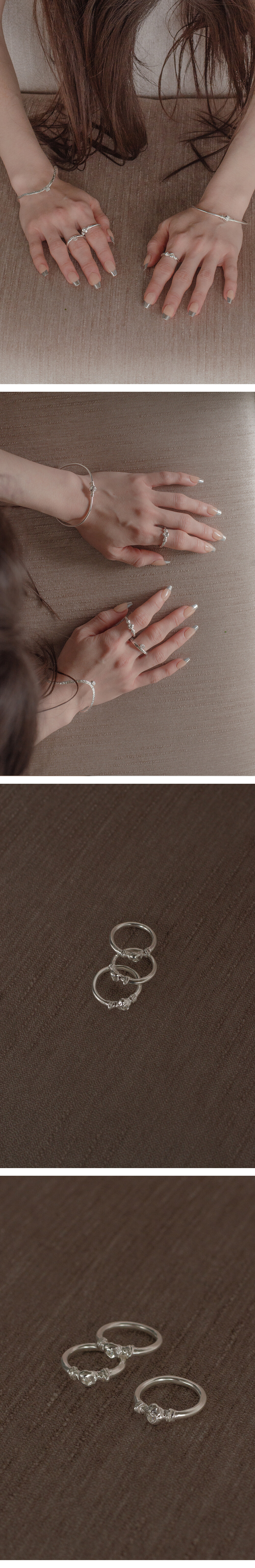 매끈한 링의 바디부분과 텍스처가 돋보이는 모티브 부분은 매듭으로 이어집니다.