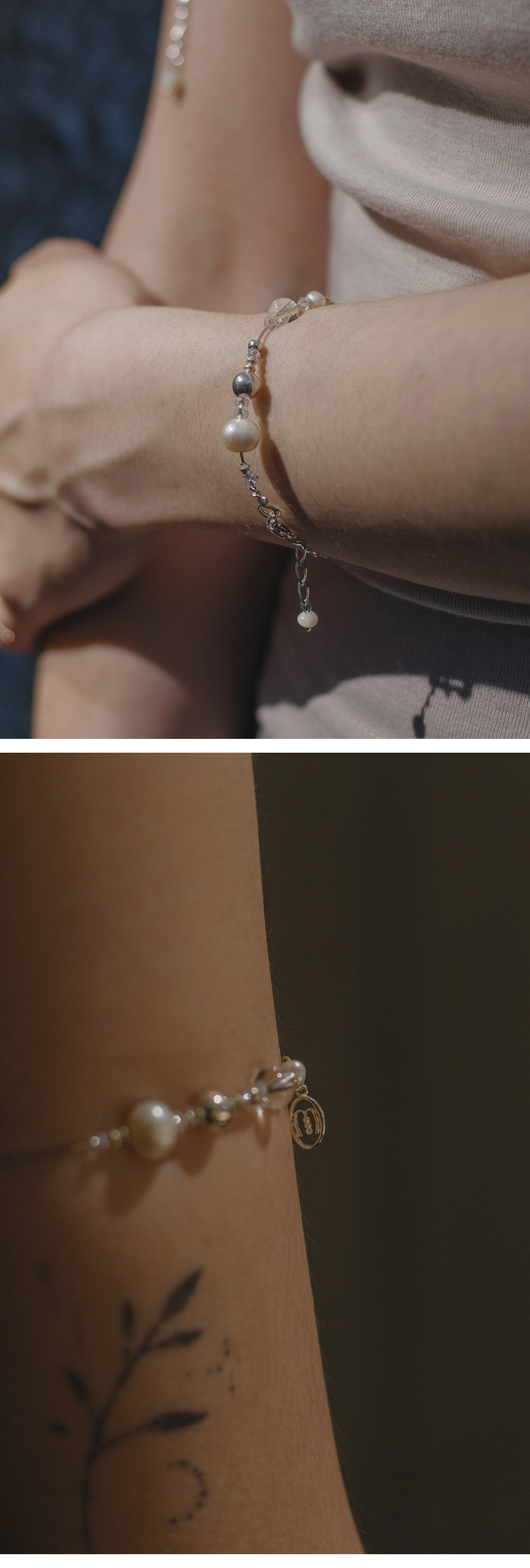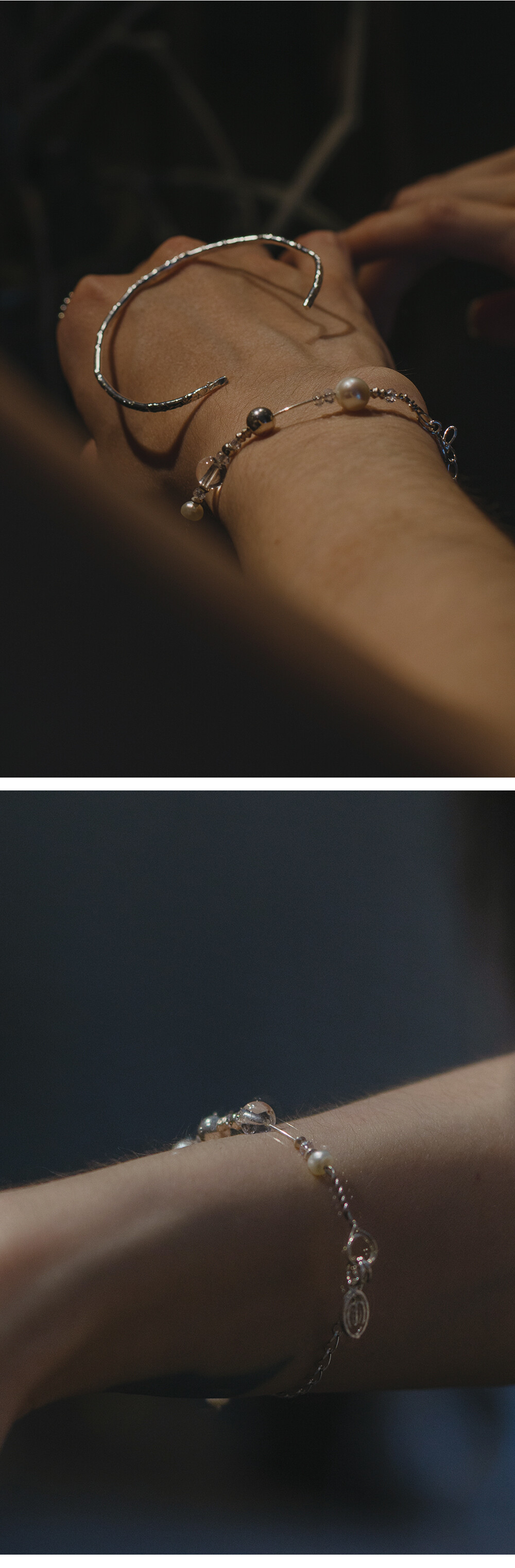 은하수라 이름 지은 이 주얼리는 움직일때 더 아름다운 모습입니다. 은 선제에 성글에 모티브를 꿰어 손목을 움직일 때마다 모티브가 움직이며 반짝거립니다.