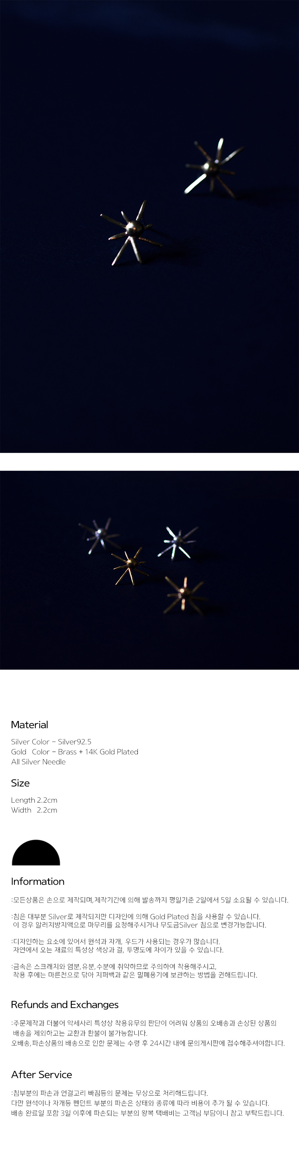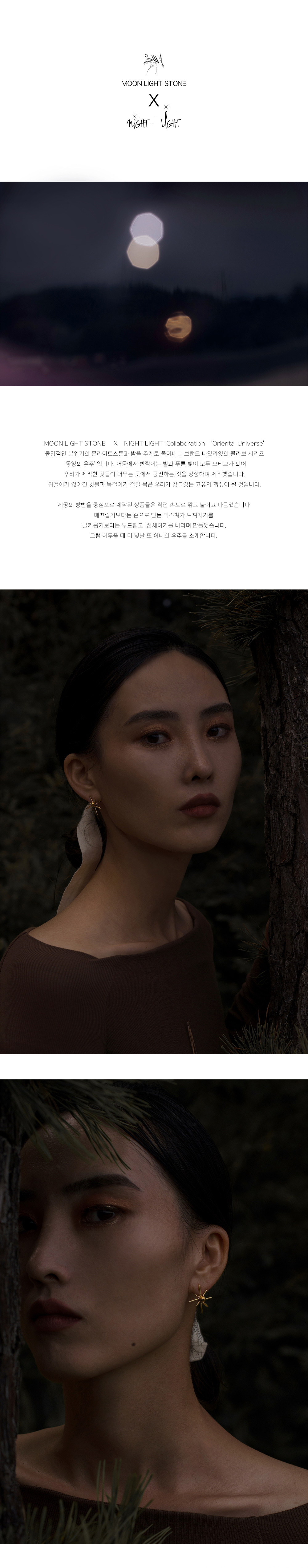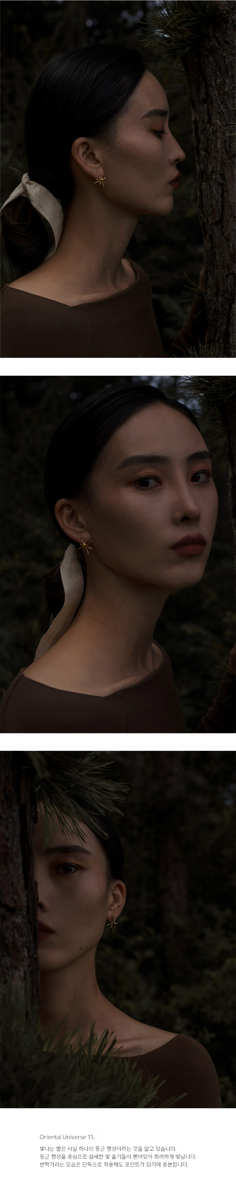 여러번 갈고 광을내서 어디에서 보나 반짝이는 귀걸이입니다. 끝부분은 날카롭지 않게 신경썼으며 둥근 행성이 땅에서 올려다보면 반짝이는걸 생각하며 제작했습니다.