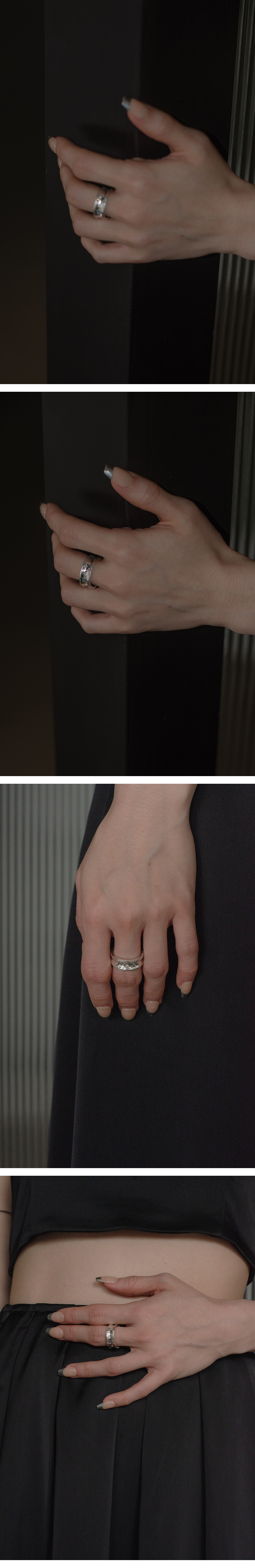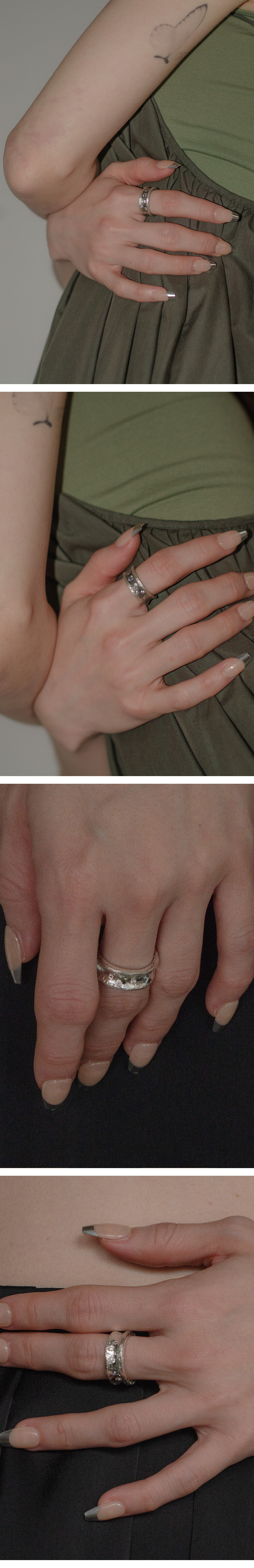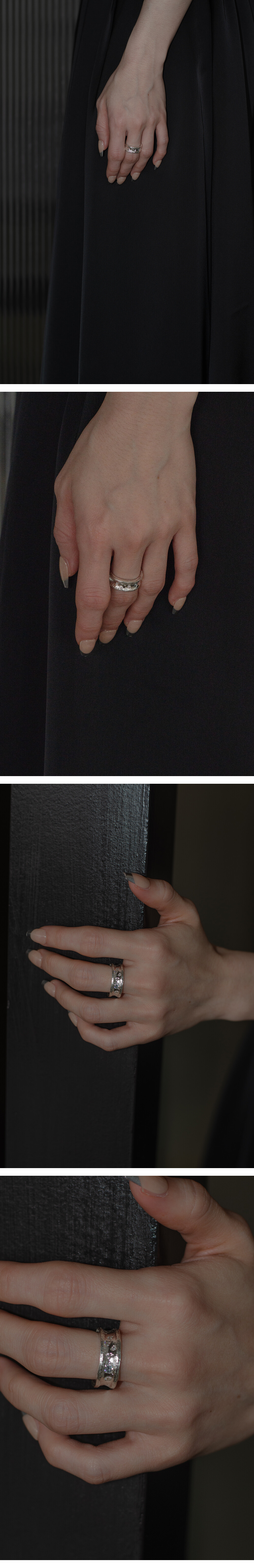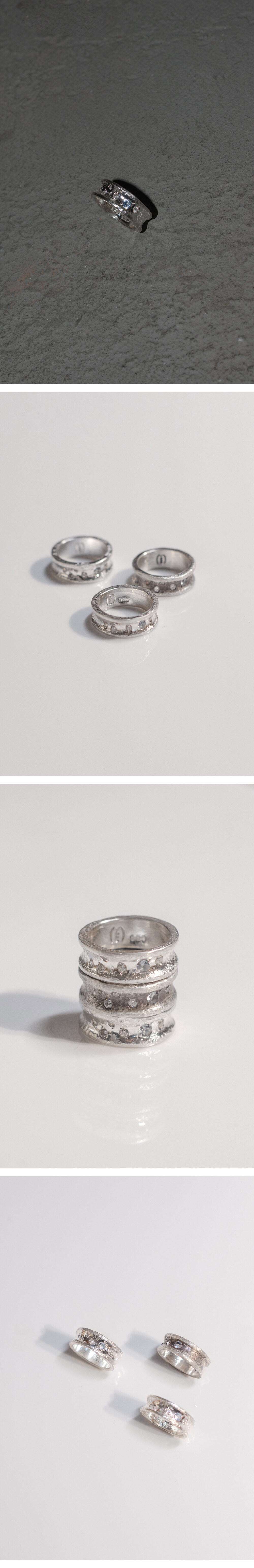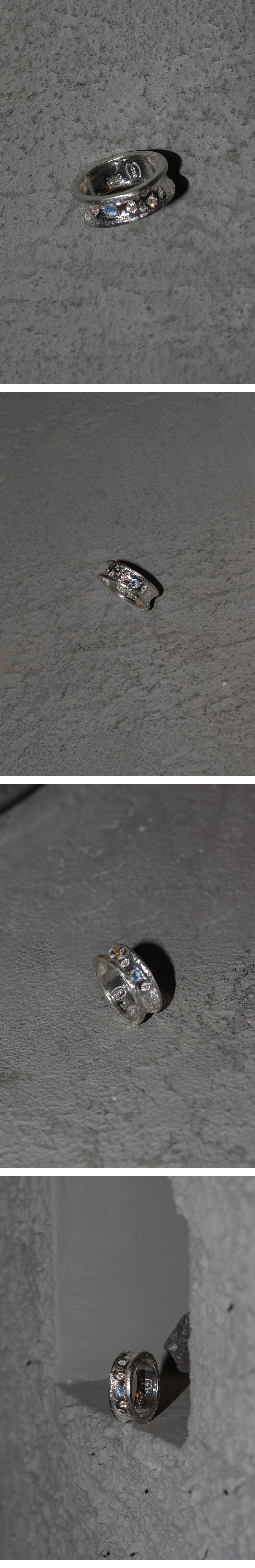 사물로 있을때보다 피부 위에서 함께 움직일때 더 아름다울 수 있도록 의도하여 제작되었습니다. 표면에 비정형적인 스톤 세팅과 일일이 손으로 작업된 질감 표현은 어떤 사이즈에서도 반짝이며 빛날 수 있도록 제작됩니다. 적당한 중량감과 속 파냄 부분이 없어 편안한 착용감을 유지 할 수 있습니다.